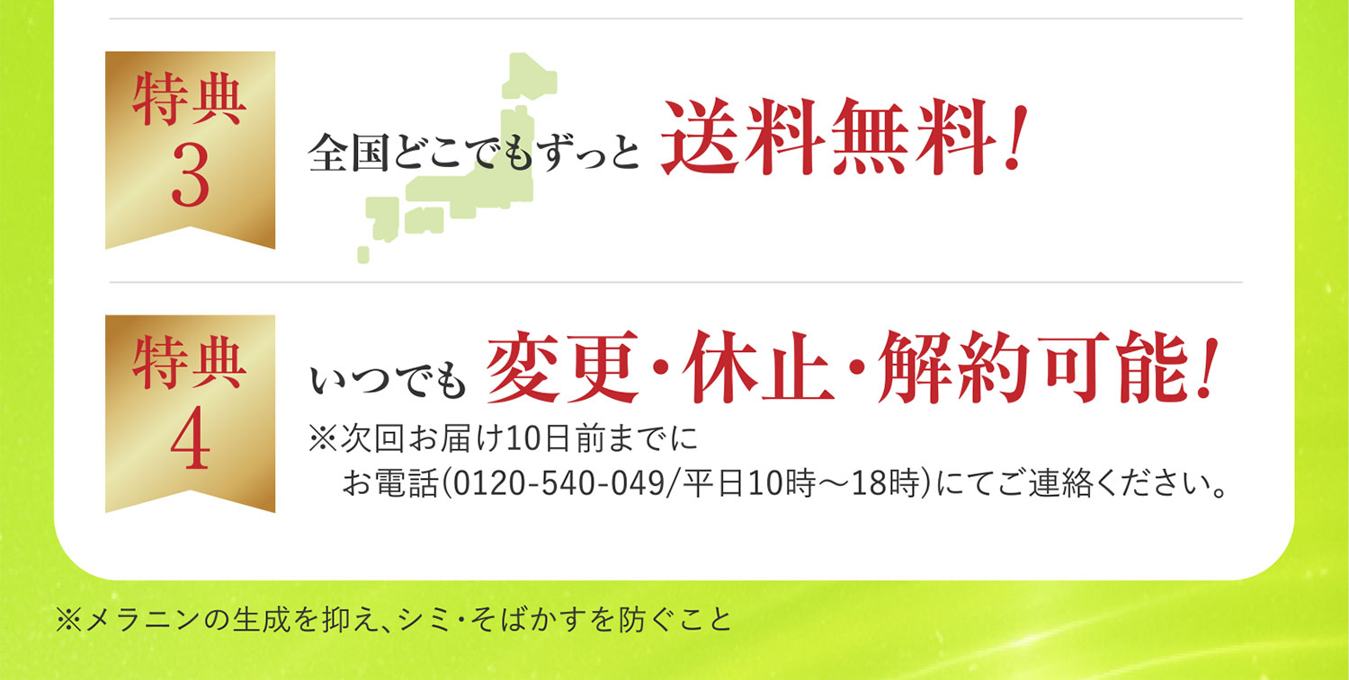 •下記のご連絡方法でお休み・変更・解約を承ります。次回お届け予定日の10日前までにお電話(0120-540-049/平日10時〜18時)、メール、またはお問い合わせフォームにてお申し出ください。